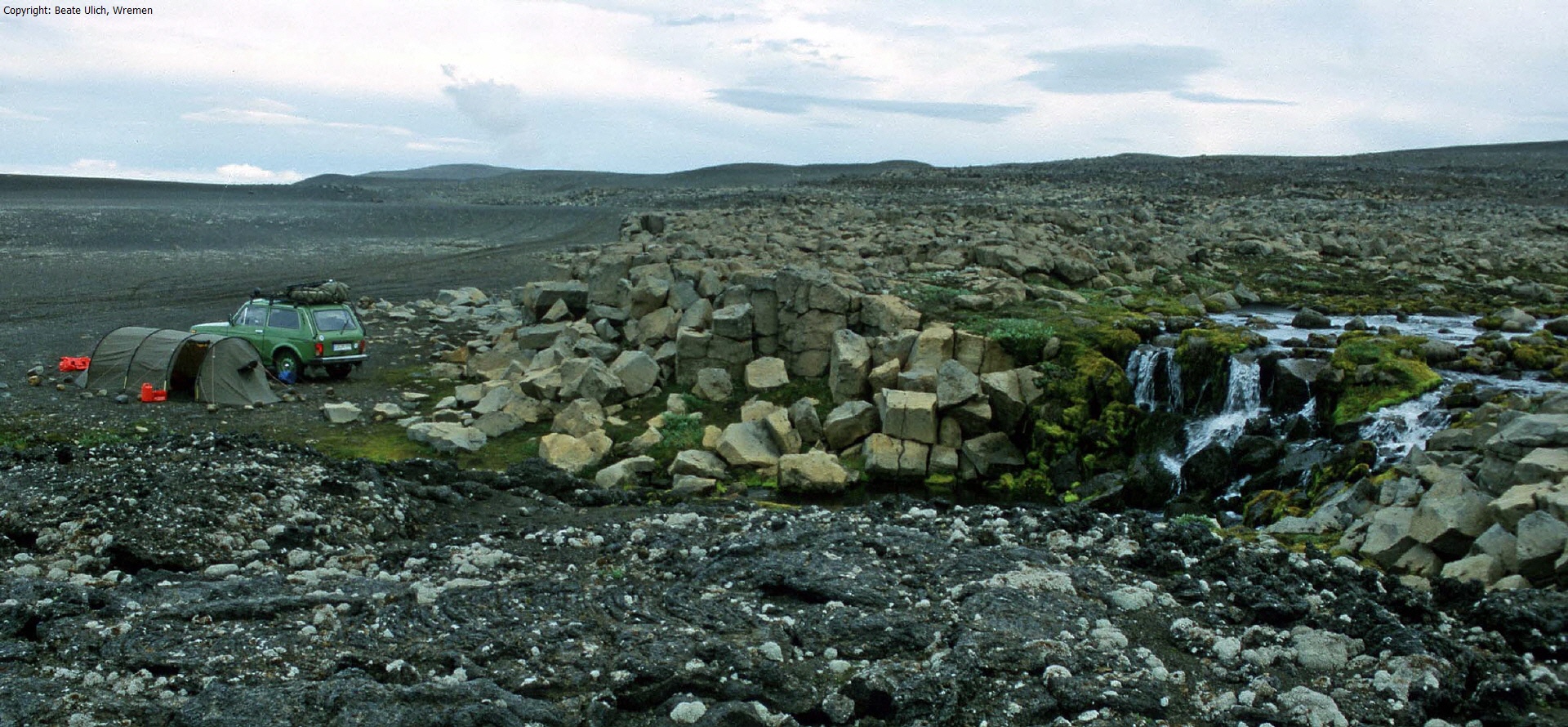 Wir wussten, dass wir angekommen waren. Alles kam uns bekannt vor, die Textstellen aus der Edda schwirrten mir durch den Kopf. „Ich bin so geschafft, dass ich von Kopf bis Fuß vibriere“ sagte ich zu meinem Mann, als ich nach sieben Stunden Fußmarsch über Felstrümmer endlich in unserem Zelt im Dyngjufjalladalur zur Ruhe kam. „Das sind nicht deine Nerven, das ist ein Erdbeben“, antwortete Horst. Mehrere Wochen lang durchstreiften wir den zum Teil weglosen Bereich des isländischen Hochlandes zwischen der letzten bewohnten Farm Svartárkot im Norden, den Gletschern an der Südküste und dem Askja-Massiv mitten in der Wüste.