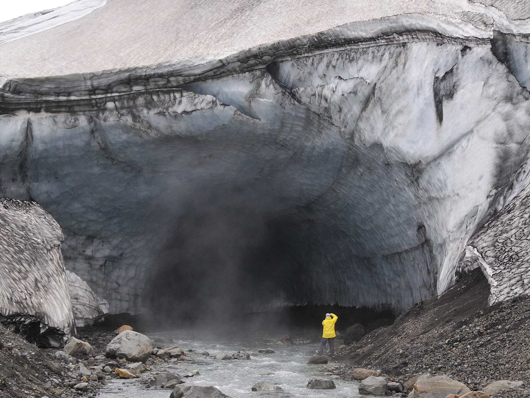 Hier liegt er nun vor uns, ein rund 900 Meter langer, lehmfarbener Bergrücken. Isländische Geologen haben ihn Kattbekingur (Katzenbuckel) genannt. Die extrem schnell erstarrte und nicht kristallisierte Lava sieht aus wie weicher Lehm oder Ton und ist eine ungewöhnliche Spielart des Vulkanismus. Und auch das peinliche Malheur aus der Sage ist vorhanden. Da entspringt doch wirklich am Rumpf des Körpers eine kleine Quelle.