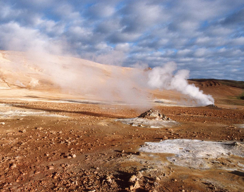 Als Bühnenbild der Skirnirsage muss die Waberlohe in irgend einer Form vulkanische Realität gewesen sein. Aber wo ist die Flammenburg zu finden? Im Skirnirlied hat der Mythendichter einen verschlüsselten Hinweis zur Waberlohe versteckt. In Strophe 10 des Liedes schreibt der Dichter, dass Skirnir bei seiner Reise über feuchte Berge fährt. Feuchte Berge können in Island nur Solfatarenfelder sein. Da wo elementarer Schwefel aus dem Erdinneren tritt und sich mit der Luftfeuchtigkeit zu schwefliger Säure verbindet, ist auch bei Frost oder Trockenheit immer eine schmierige, glitschige Schicht auf dem Boden zu finden. Auf dem Weg vom Tafelvulkan Herdubreid zum Mückensee liegt die Bergkette Namafjall mit Islands berühmtesten Solfatarenfeldern. Sie heißen Hverarönd und bedecken einen ganzen Berghang. Hier führte zur Zeit der Edda-Dichter ein Reitweg entlang.