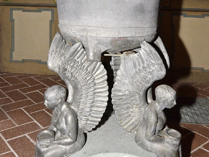 Im Innern der Kirche befindet sich eine Kanzel von 1623, ein Altar von 1696, ein Epitaph von 1611, sowie ein bleierner Taufkessel aus dem 14. Jahrhundert. Bis Ende der 1990ziger Jahre hätte der wertvolle bleierne Taufkessel in der Midlumer St.-Pankratius-Kirche ein eher unbeachtetes Dasein unter der Kanzel gefristet, weiß Pastor Mauritz. Es sei dem damaligen Pastor und dem damals verantwortlichen Kirchenvorstand zu verdanken, dass das Taufbecken gründlich renoviert am 1. April 2004 - auf den Flügeln von Engelgestalten ruhend - wieder aufgestellt werden konnte. So würde für ihn bei jeder Taufe auf das Psalmwort hingewiesen: „Denn er hat seinen Engeln befohlen, dass sie dich behüten auf allen deinen Wegen, dass sie dich auf Händen tragen und du deinen Fuß nicht an einen Stein stoßest.“ (Psalm 91).
