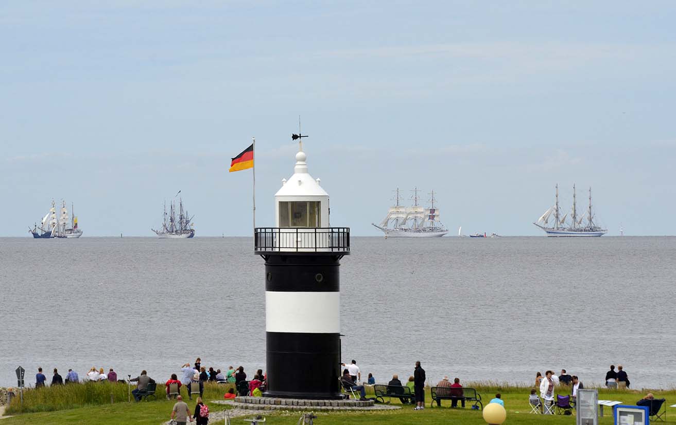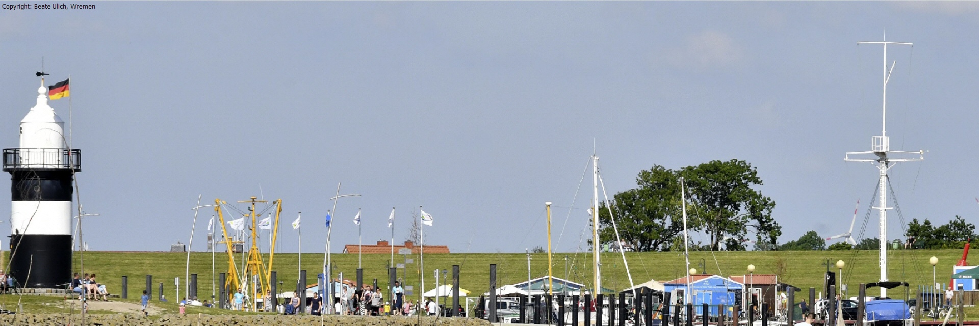 Nicht nur Blickfang am Hafen und Wahrzeichen von Wremen ist der Leuchtturmnachbau „Kleiner Preuße“. Mittlerweile ist der markante schwarz-weiße Turm auch zum echten Geheimtipp bei Hochzeitspaaren geworden.